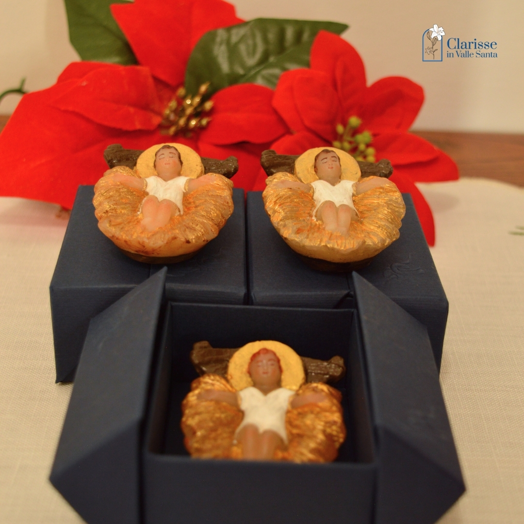 La lavorazione della cera è un’arte presente da secoli nel nostro Monastero e noi Clarisse di Rieti abbiamo a cuore che questa tradizione artigianale continui nella valle Santa; in particolare ci dedichiamo alla creazione dei Bambini in cera segno visibile  dell’Incarnazione, mistero da cui scaturiva la nostra salvezza per san Francesco, tanto da desiderarne la rappresentazione viva nel presepe di Greccio.