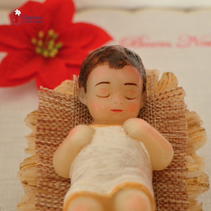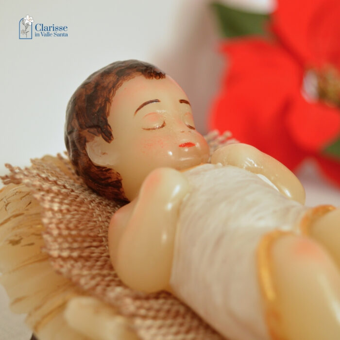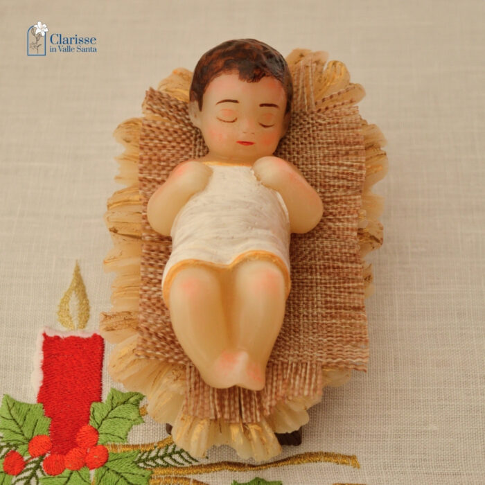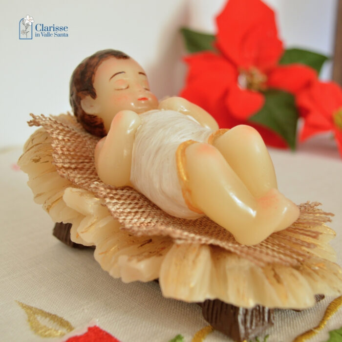 Casa Lo Shop delle Clarisse Santi e Devozioni Presepe Bambinello occhi chiusi e mani chiuse con culla in cera
