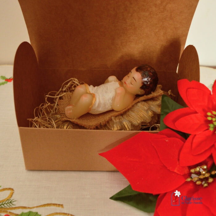 La lavorazione della cera è un’arte presente da secoli nel nostro Monastero e noi Clarisse di Rieti abbiamo a cuore che questa tradizione artigianale continui nella valle Santa; in particolare ci dedichiamo alla creazione dei Bambini in cera segno visibile  dell’Incarnazione, mistero da cui scaturiva la nostra salvezza per san Francesco, tanto da desiderarne la rappresentazione viva nel presepe di Greccio.