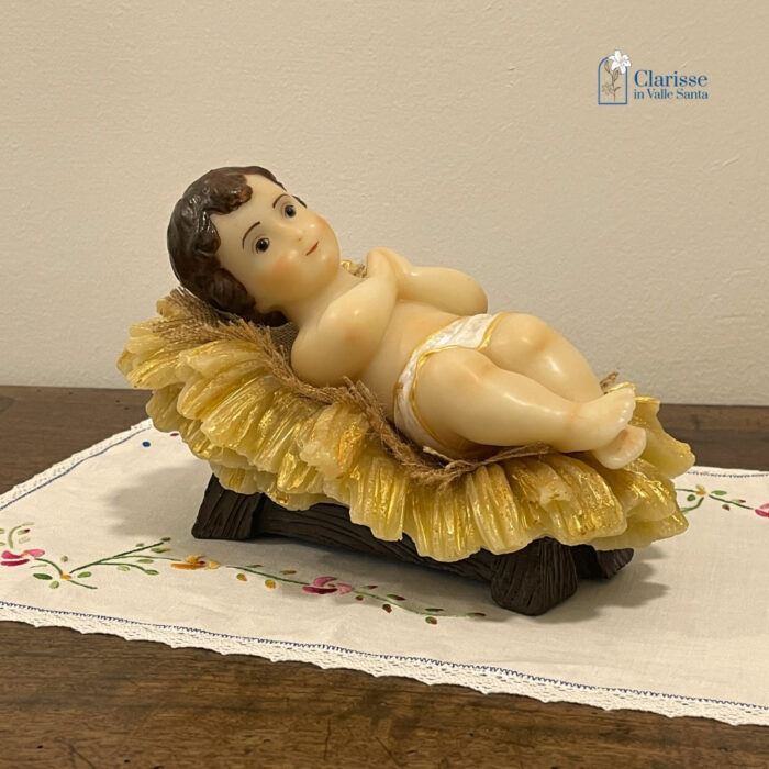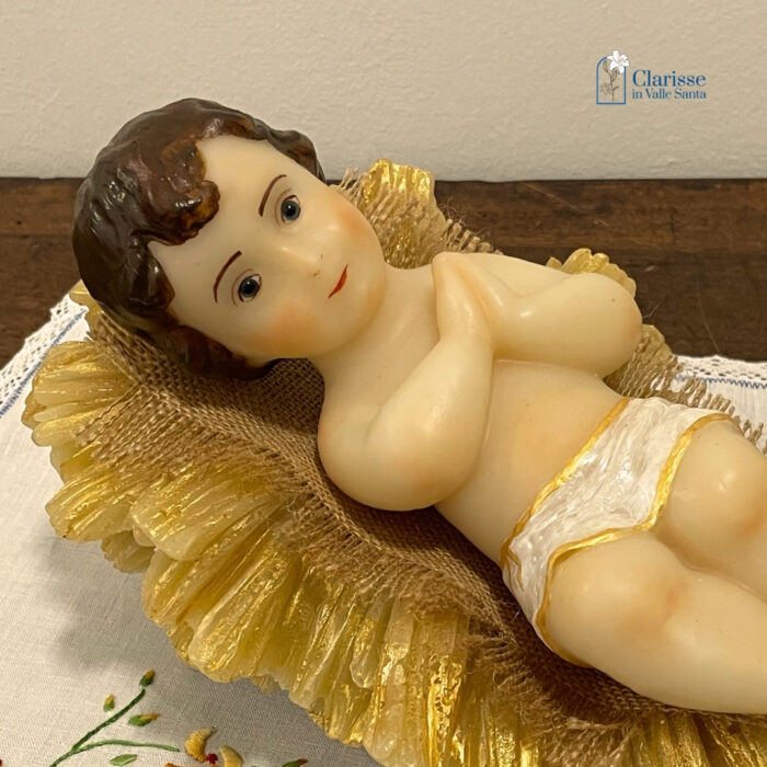 Casa Lo Shop delle Clarisse Santi e Devozioni Presepe Bambinello occhi aperti di cristallo con culla in cera